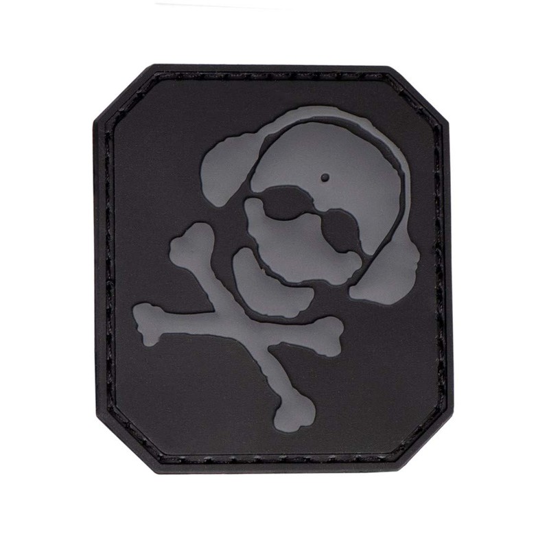 Black and Grey PVC Skull Guy Patch. 1.75 inch wide by 2 inch tall. Velcro hook backing. 4 colors available. Get them all!