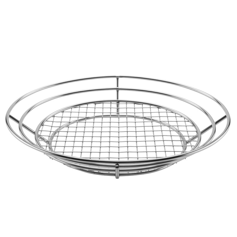 G.E.T. 4-84814 12.5" x 9.25" Stainless Steel Oval Basket with Raised Grid Base, Clipper Mill (Qty,1)