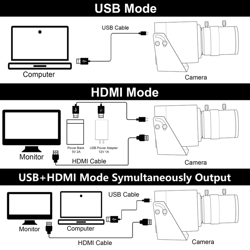 - Plug&Play, UVC compliant, just connect the camera to PC, laptop, Android device or Raspberry Pi with the included USB cable without extra drivers to be installed.