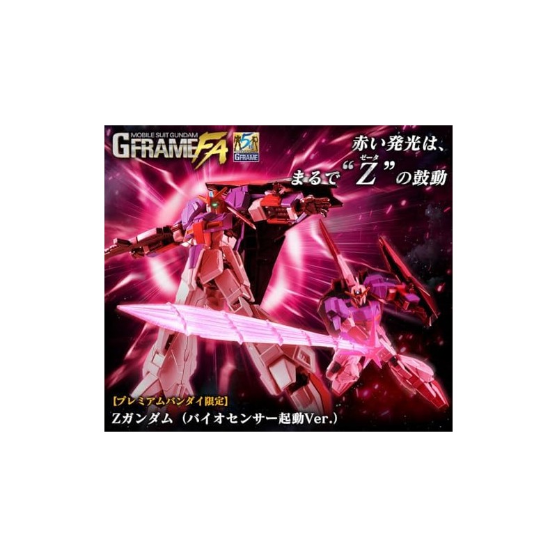 - Introducing Z Gundam (Biosensor Activated Version) from Mobile Suit Z Gundam (Biosensor Activated Version) from "Mobile Suit G-Frame F" that can enjoy both the beauty and joy of posing. The characteristic redness of the light when the bio-sensor is activated, is reproduced using metallic molding color and metallic coating. In addition, the beam saber has been larged when the bio-sensor is activated, and has an extra-large volume of about 9.8 inches (25 cm)