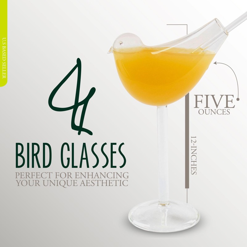 - [Clear Visibility]: Ultra clear crystal bird drinking glass allow guests to see your beautiful concoctions; 4 cool glass cups can be used as stemmed wine glasses or unique cocktail glasses