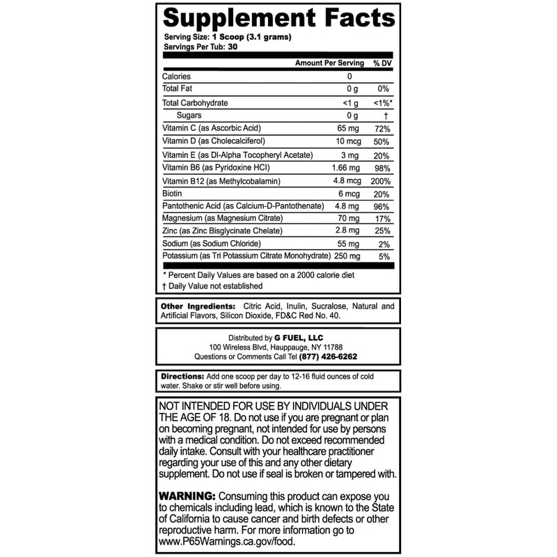 • MAKE THE SWITCH TO CLEAN HYDRATION: Whether it's for gaming, work, school, your workout, or daily pick-me-up, G Fuels sugar free, caffeine free, zero calorie hydration drinks will give you the edge you need to power through your grind! Use our supplements as a pre gaming drink, for post workout, or whenever you need an energy boost.