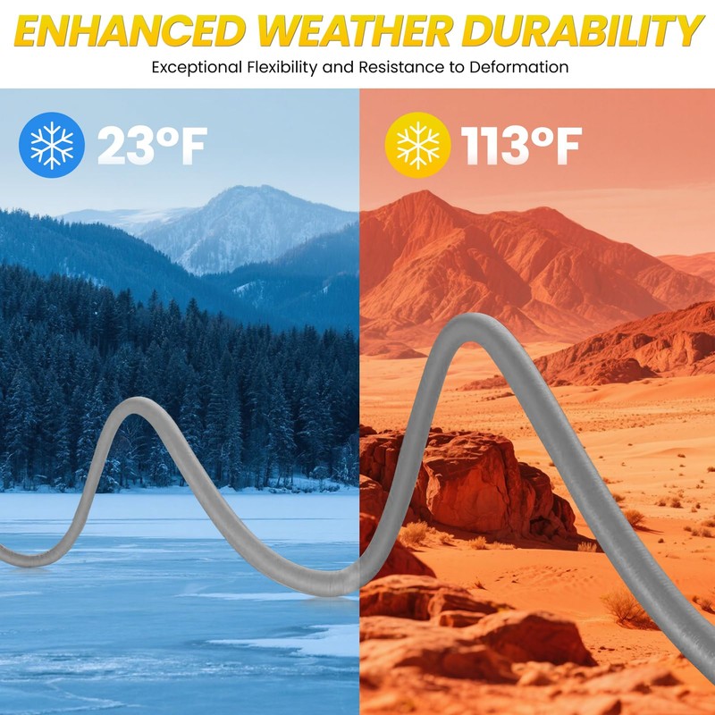 - Premium 65+6.5 ft Hybrid Hose: The professional-grade polymer hose excels in extreme conditions (23°F to 113°F) with abrasion/heat/oil/water resistance and 300 PSI capacity. Its 3/8-inch inner diameter (5% more airflow than competitors) ensures efficiency for heavy-duty tasks