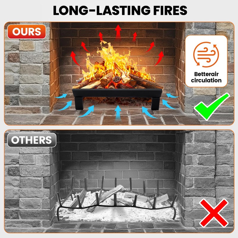 - Better Air Circulation: Raises logs 2 inches above ground for airflow, resulting in hotter fires, less smoke, and easier ash cleanup