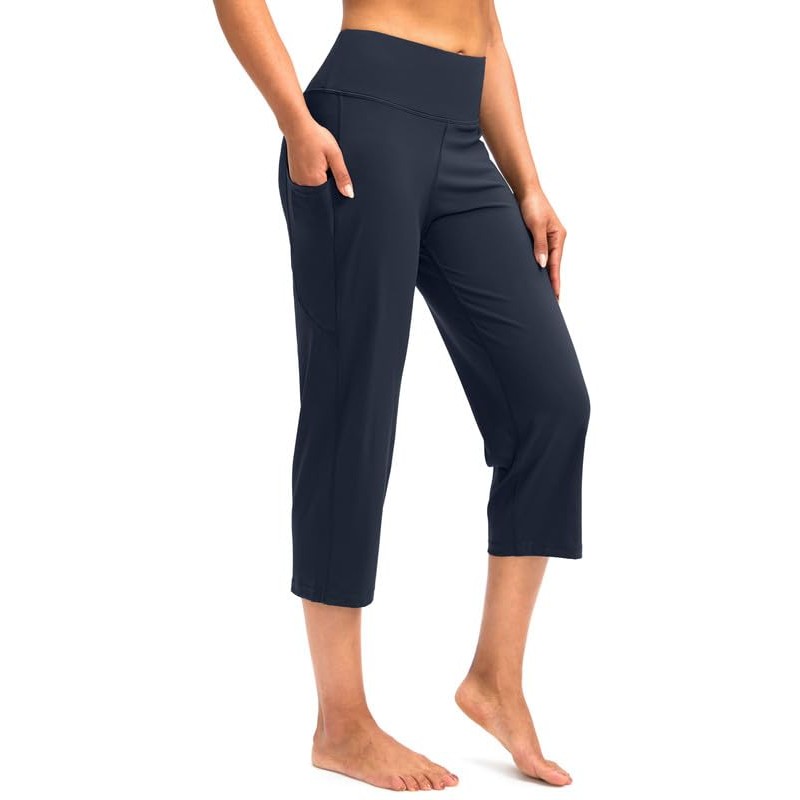 G Gradual Capri Pants for Women High Waist Workout Yoga Pants with Pockets Tummy Control Leggings Crop Straight Pants(Navy,L)