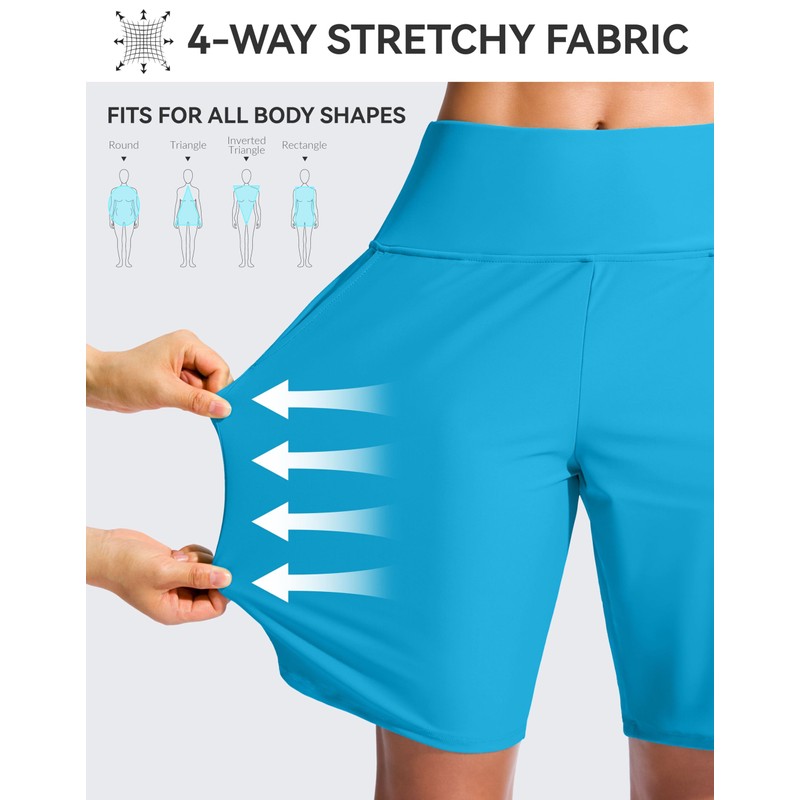G Gradual Women's 9" Long Swim Board Shorts High Waisted Quick Dry Beach Swimming Shorts for Women with Pockets Liner(Sky Blue,XL)