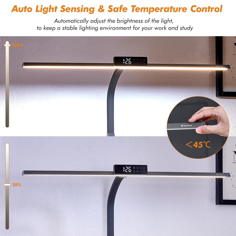 - [Auto Light Sensing & Safe Temperature Control] G keni desk lamp can automatically adjust the brightness of the light when the ambient light changes, ensuring a stable brightness for your work and study. We have also solved the issue of the lampshade overheating, with the maximum temperature not exceeding 45°C, Please feel free to let your children use it.