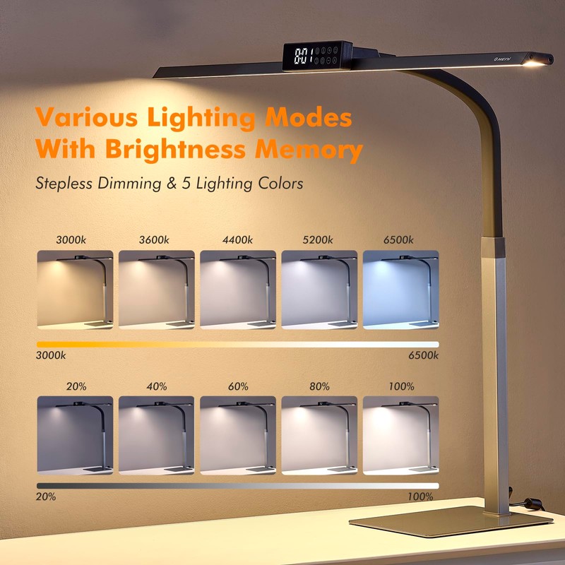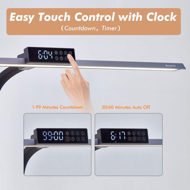 - [Ultra Bright Desk Lamp with Clock] Our desk lamp features 144pcs high-quality LED beads, with a brightness of up to 3400 lumens and a power consumption of 25W. It includes a clock with countdown and automatic timer shut-off functions, making your work and study more efficient and convenient.