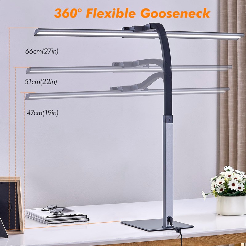 - [ 360°Multi-Angle & 31.5 inch lampshade ] 360°flexible gooseneck makes this light be bendy to any angles we need; Let's enjoy handmade, video editing, working videos, bedside reading, dormitory study, painting, and drawing, 31.5 inch ultra-long integrally formed aluminum alloy lampshade provides a wider range of the light.