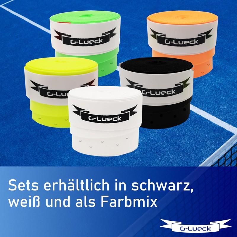 G-Lueck Set of 27 Tennis Premium Overgrip Power Touch with Perforation - High Grip, Long Durability - 0.60 mm Thickness | Grip Tape for Padel, Squash, Badminton Racket | Perforated (Mixed Colours)