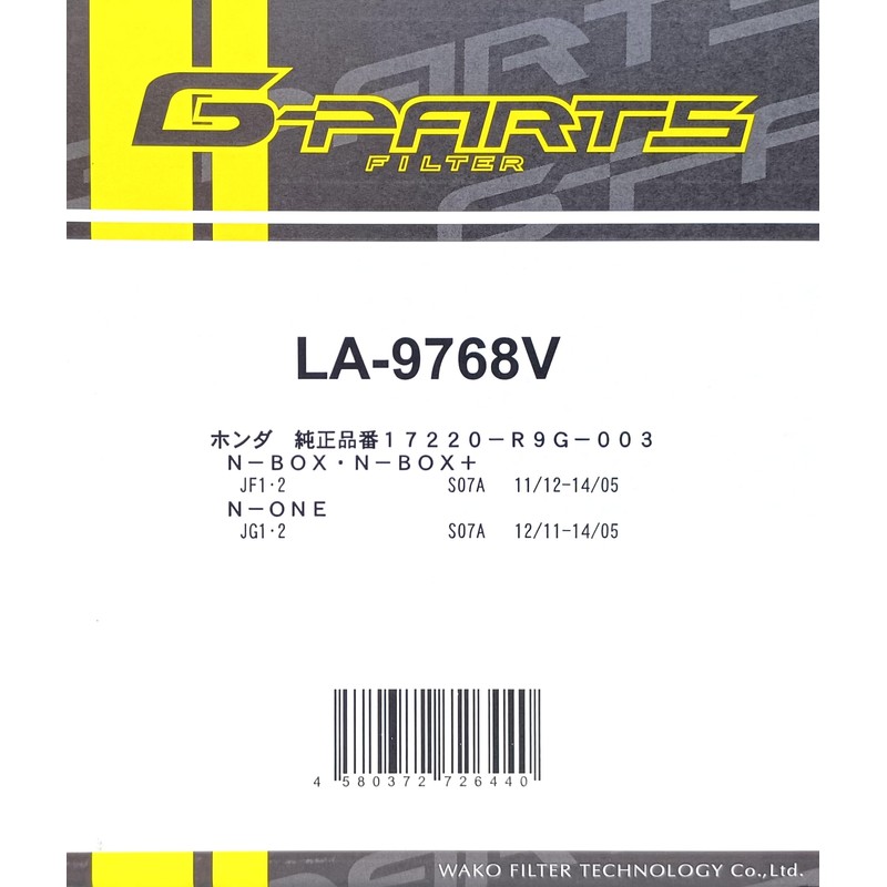 [G-PARTS/Wako Auto Parts Sale] WAP Air Filter Reference Model (N-BOX / N-ONE 11-) Genuine Part Number: 17220-R9G-003 《Model Number》 LA-9768V