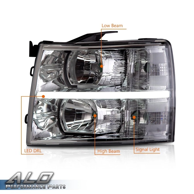 G-PLUS Fit For 07-2014 Chevy Silverado Clear Lens Chrome Housing LED DRL Headlights