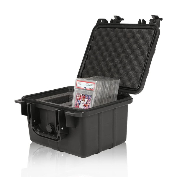 G-PLUS Graded Card Storage Box Compatible with BGS PSA SGC FGS Graded Sports Trading Cards,Weatherproof Case Impact Absorbing Foam Slots (Small, Black)