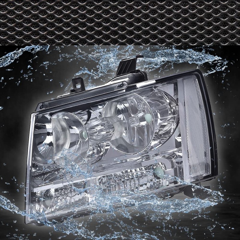 G-PLUS Headlights Assembly Compatible with Chevy Tahoe Subarban Avalanche 2007 2008 2009 2010 2011 2012 2013 2014 Set Pair Bumper Corner Headlamp Left & Right Smoky lens Chrome Housing Clear Reflector