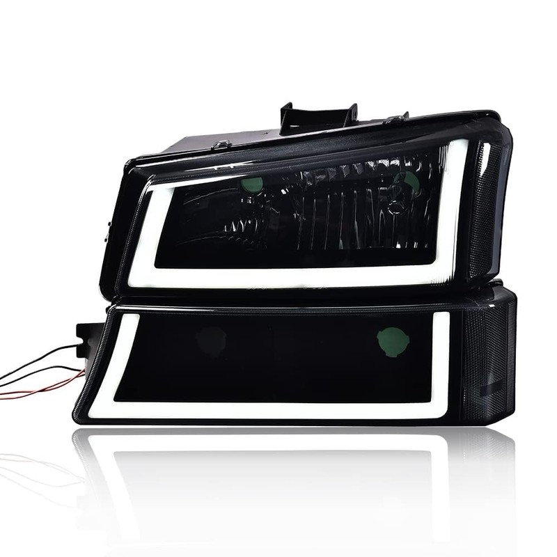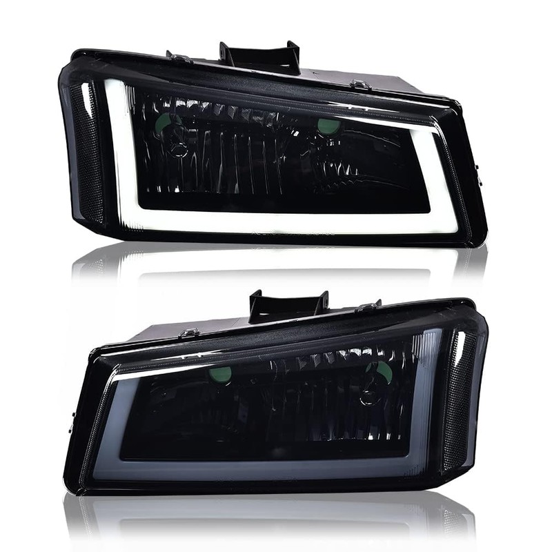 G-PLUS LED DRL Headlights, Compatible with 2003-2006 Chevy Avalanche 1500 2500/Silverado 1500 2500 3500 & HD Models Headlamp, Driver Side & Passenger Side, Smoky lens Black Housing Clear Reflector