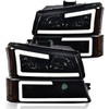 G-PLUS LED DRL Headlights, Compatible with Chevy Silverado 1500 2500 3500&HD 2003 2004 2005 2006/Fit Chevy Avalanche 2003-2006 Bumper Headlamp,faro Smoky lens Black Housing Amber Reflector