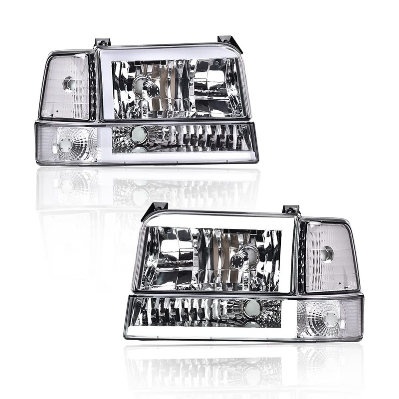 G-PLUS LED DRL Headlights, Fit For 1992-1996 F150 Bronco/1992-1997 Ford F250 F350 Super Duty Headlamps w/Corner Signal, Driver Side & Passenger Side, Clear lens Chrome Housing Clear Reflector