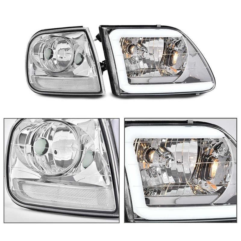 G-PLUS LED DRL Strip Headlights, Compatible with 1997-2002 Ford Expedition, Compatible with 1998-2004 Ford F150/1997-1999 F250, Driver and Passenger Side, Clear lens Chrome Housing Clear Reflector
