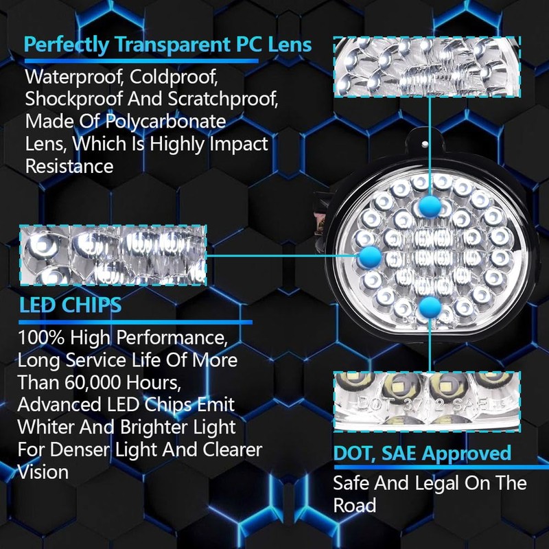 - BRIGHT ILLUMINATION: With super bright LED . Allow you to see and be seen by oncoming drivers even through a thick fog.Ideal for showcasing use or replacing old and worn fog lights.