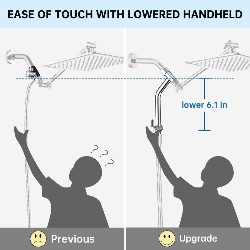 - INNOVATIVE LOW-LEVEL DESIGN: Compared to traditional style shower diverter, this newly upgraded diverter makes it easier for you to adjust the mode with one reach, making your shower experience more convenient and enjoyable. Family members of different heights and people with reduced mobility can also enjoy the shower more conveniently during adjustment.