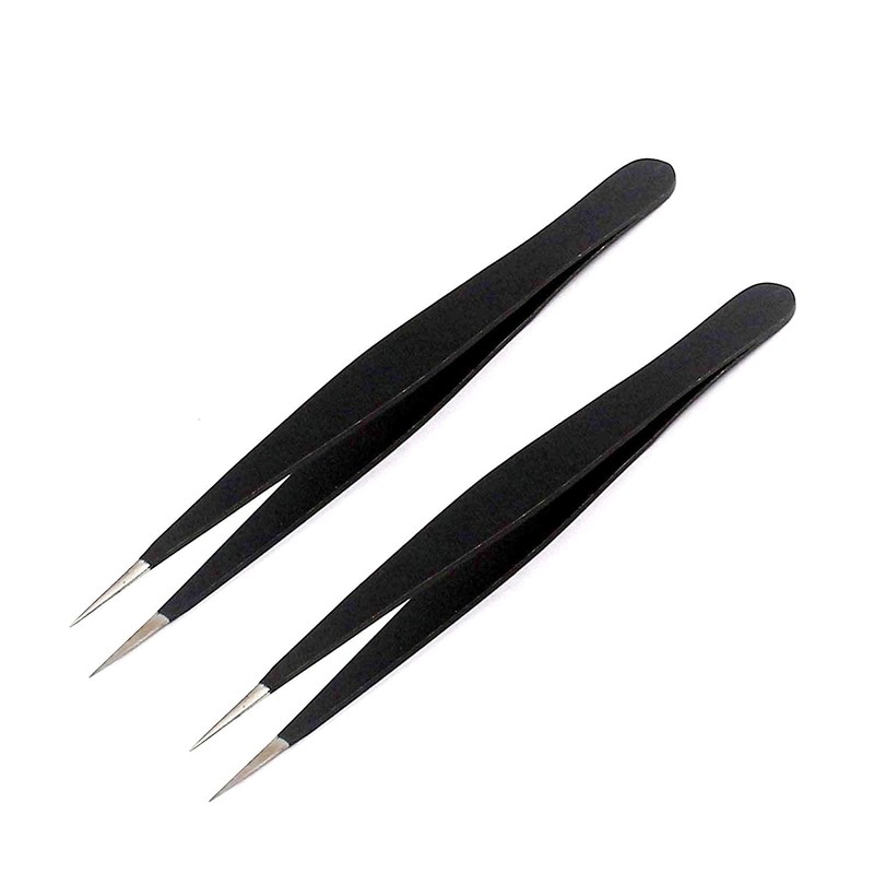 - G.S 2 PCS Precision Surgi Grade Tweezers - Best Stainless Steel Sharp Tweezers for Ingrown Hair Extraction, Precise Eyebrow, Facial and Body Hair Grooming, Splinter, Tick - Needle Nose Black