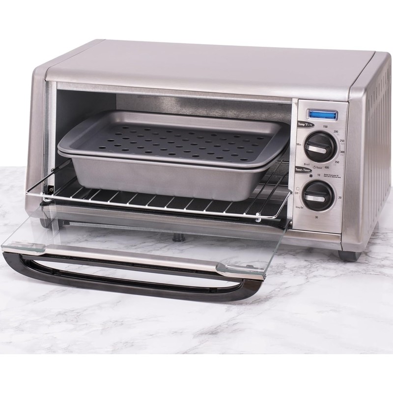 OvenStuff Nonstick Toaster Oven Bake, Broil and Roast Set, 6.5 x 1.8 x 8.5 inches, 2-Piece Set, Grey