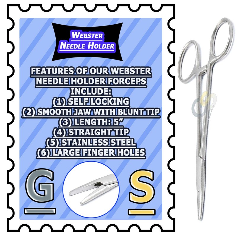 - G.S STAINLESS STEEL WEBSTER NEEDLE HOLDER 5.5" FINE POINT SMOOTH JAWS VETERINARY DENTAL INSTRUMENTS BEST QUALITY