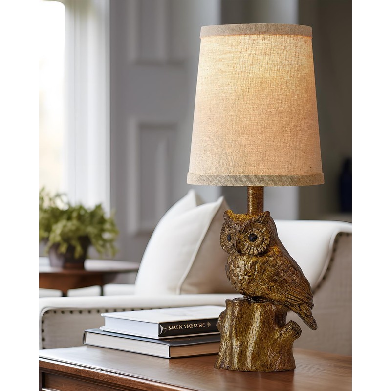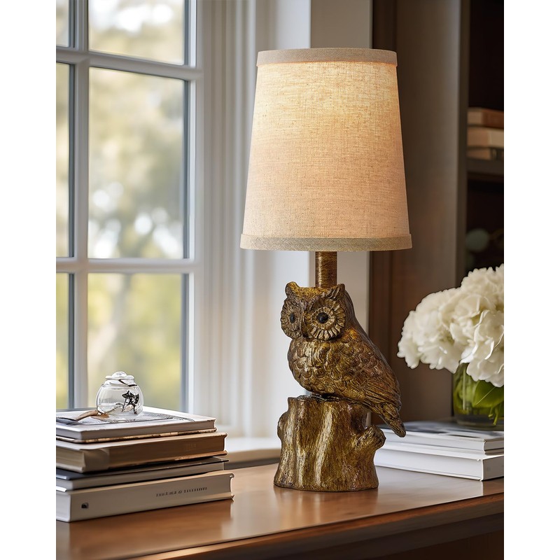 - FARMHOUSE STYLE: This small antique gold table lamp features a high quality resin body and a linen shade, owl lamp animal lamp with soft lighting to create a classic farmhouse style suit for living room bedroom and office room