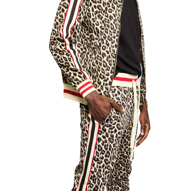 G-Style USA Men's Leopard Track Suit Set with Drawstring Waistband ST567 - Br...