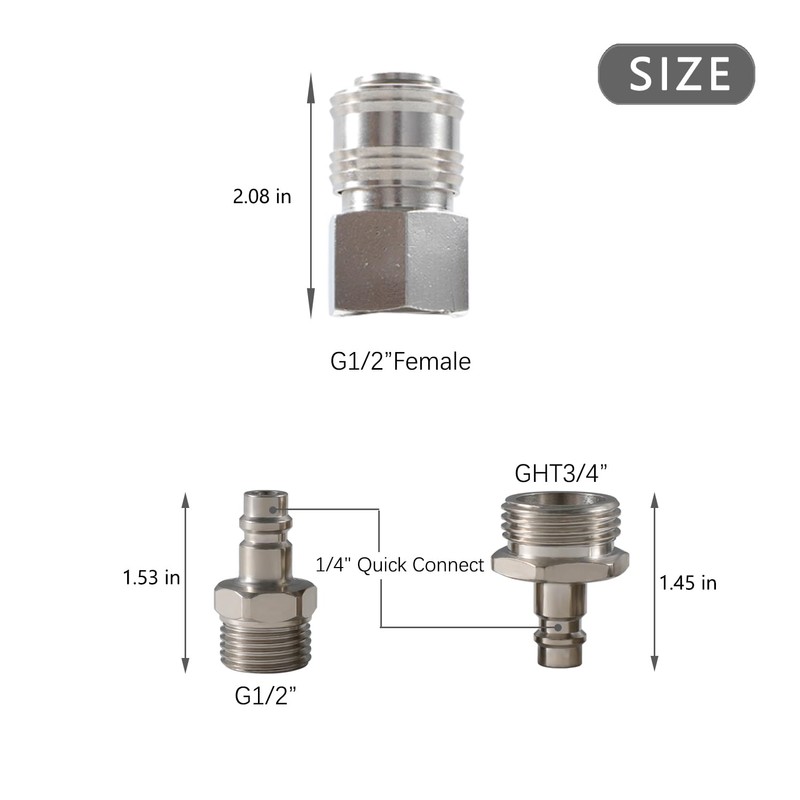 G-Sunny RV Exterior Quick Connector Hose Fitting,with 1/2 "Shower Hose Adapter and 3/4" Garden Hose Adapter,for RV Exterior Shower Faucet Connect Shower Hose and Garden Hose(Brushed Nickel)