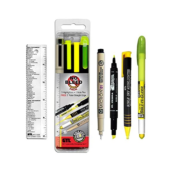 - Includes ACCU-Gel Hi-Glider Highlighter, Bible Dry Refillable Highlighter, ZeBrite Double Ended Highlighter and Black Pigma Micron Bible Pen