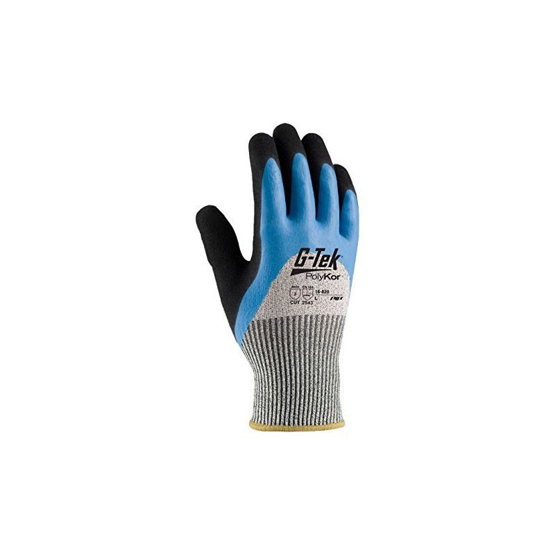 G-Tek CR 16-820/S Seamless Knit HPPE/Glass Glove with Acrylic Lining and Double-Dipped Latex Coated Micro-Surface Grip on Palm, Fingers and Knuckles