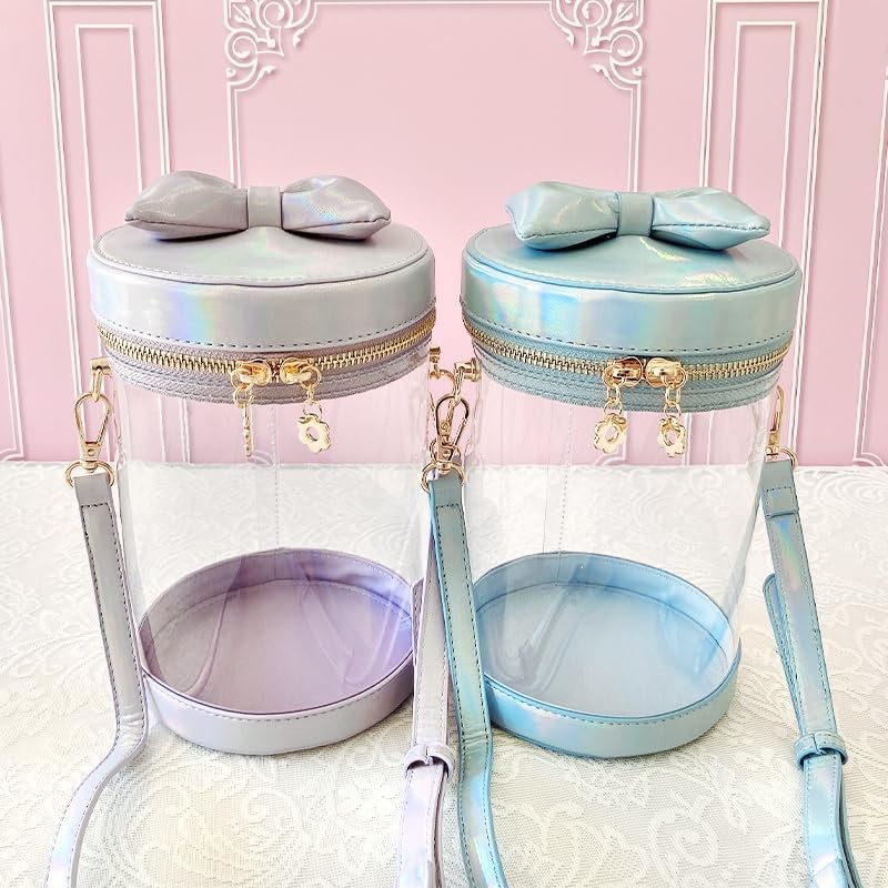 G Trigger Cat Ears Style Sewn Bag with Ribbon Sewn Pouch, Storage, Showing Bag, Shoulder Bag, Event, Clear, Transparent, Cylindrical, Lavender, Purple