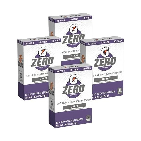 - The G Zero Thirst Quencher Powder Packets in grape flavor are a convenient way to stay hydrated. Each packet contains no calories and is designed to provide electrolytes without the added sugars found in many sports drinks. You can easily mix these packets with water for a refreshing drink. With 40 individual packets, they’re perfect for on-the-go hydration, whether you’re at the gym, on a hike, or just need a quick refreshment at home. Would you like to know more about their nutritional information or other flavors?