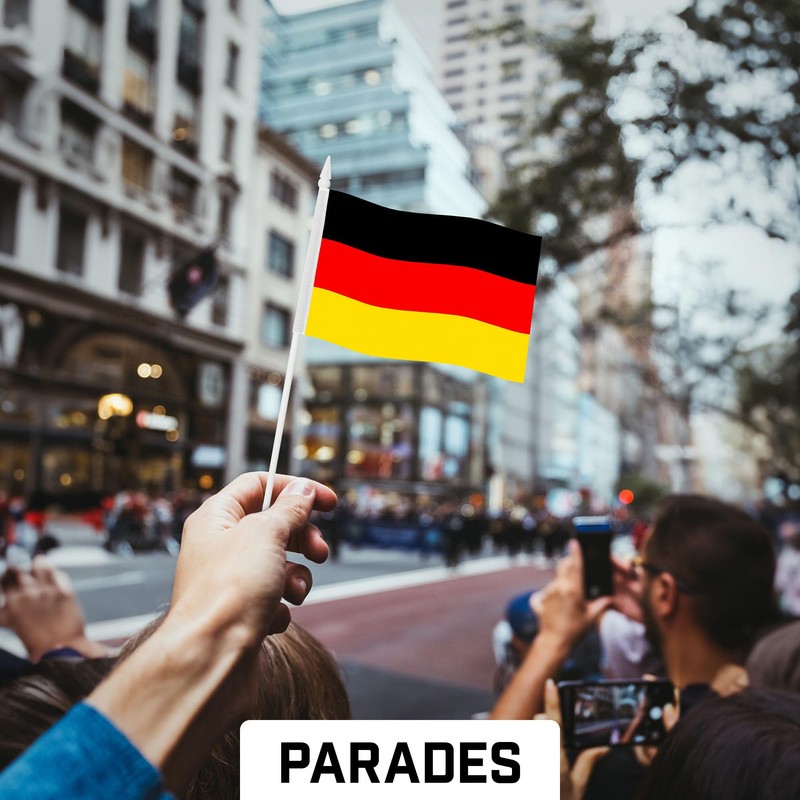 G128 12 Pack Handheld Germany German Stick Flags | 4x6 In | Printed 150D Polyester, Country Flag, Solid Plastic Stick, Spear White Tip