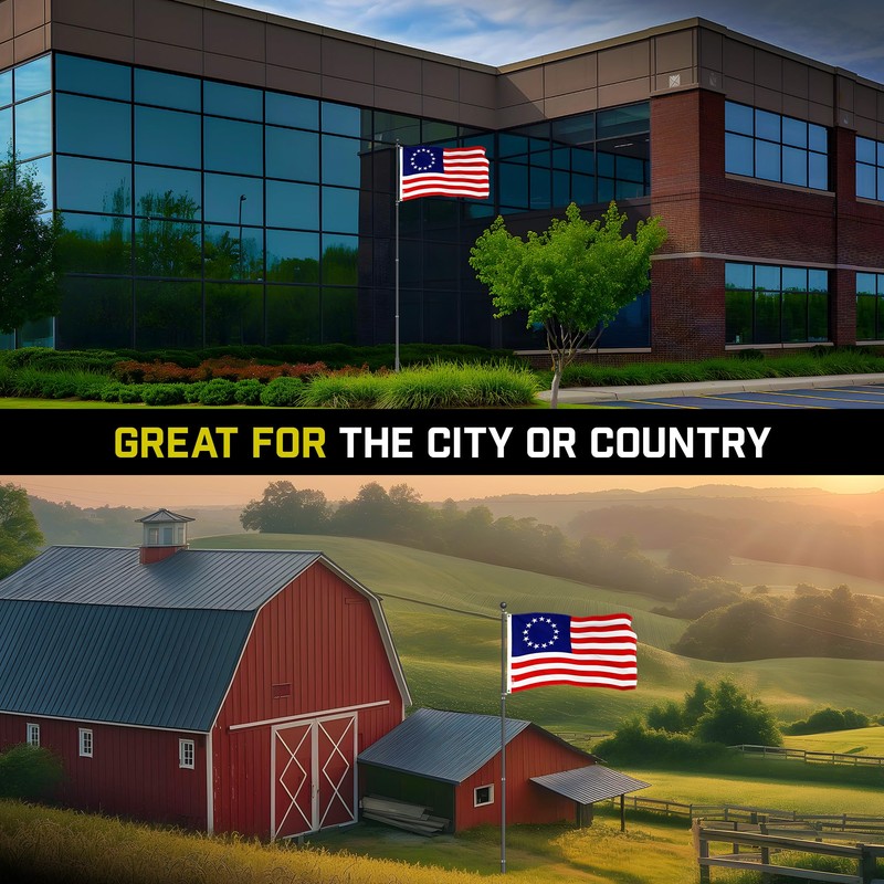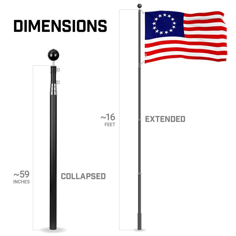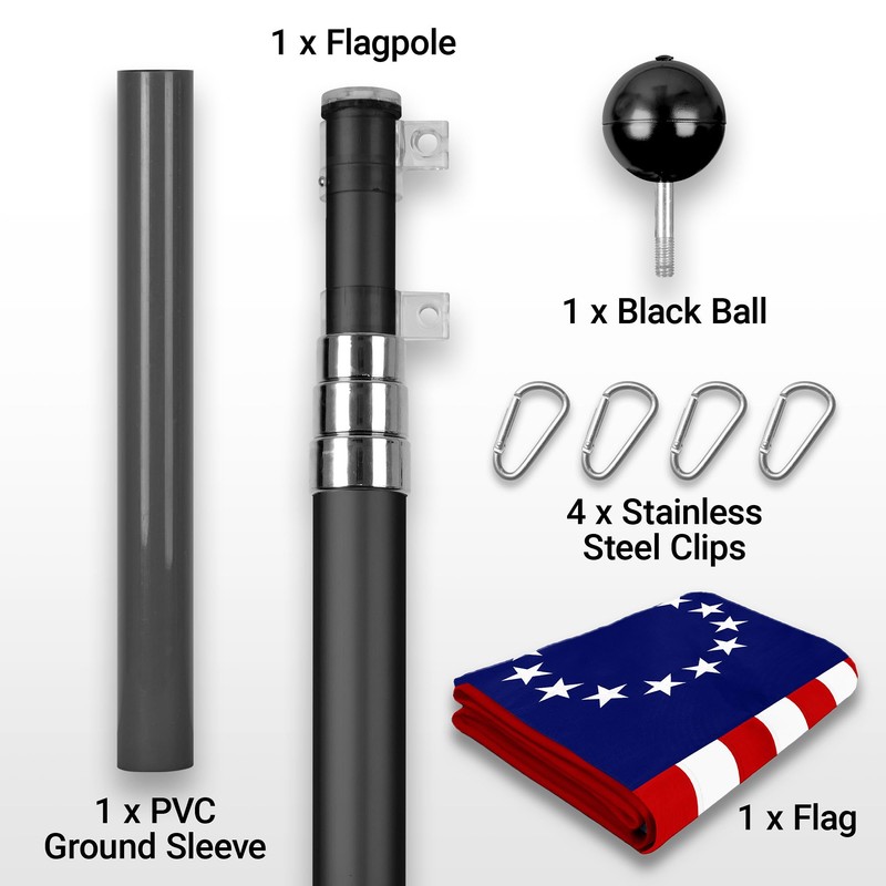 G128 Combo Pack: 16 Ft Telescoping Aluminum Flagpole (Black) & Betsy Ross Flag 3x5 Ft, ToughWeave Series Embroidered 300D Polyester | Pole with Flag Included