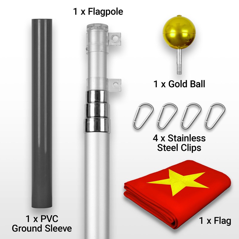- Package: 1 flag; 1 PVC sleeve; 1 Flagpole; 1 Topper Golden Ball Ornament; 1 Instruction; 4 Stainless Steel Clips