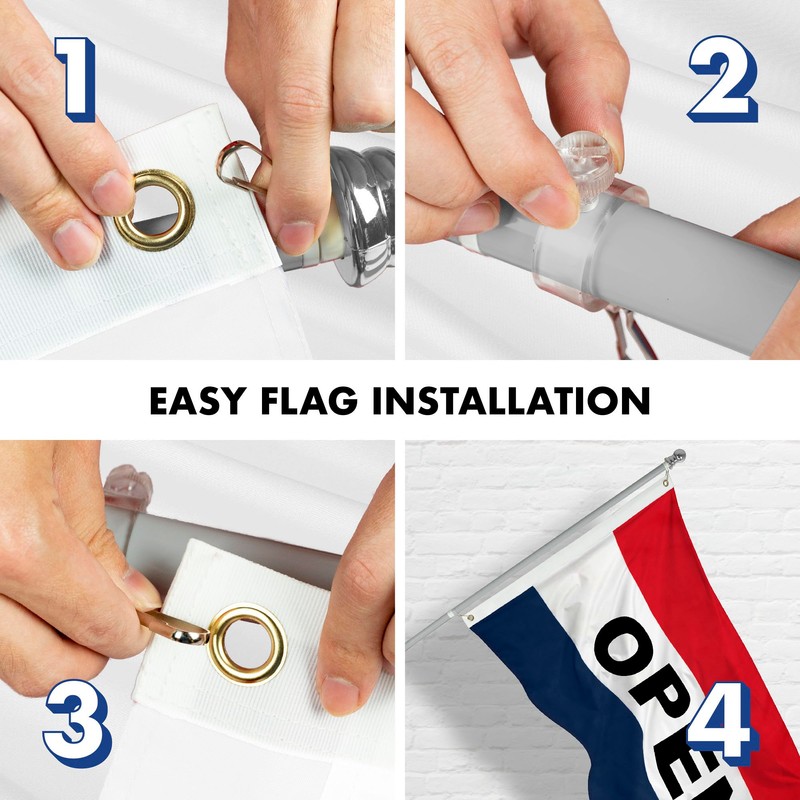 - DELUXE PACKAGE: G128 is including a 2x3 Ft, Printed, Open flag with brass grommets for this deluxe flag and flagpole package!