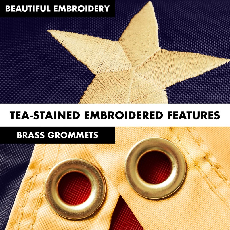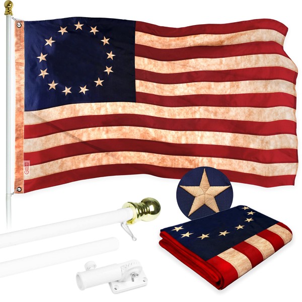 - DELUXE PACKAGE: G128 is including a Betsy Ross Tea Stained 3x5 Ft flag with brass grommets for this deluxe flag and flagpole package!