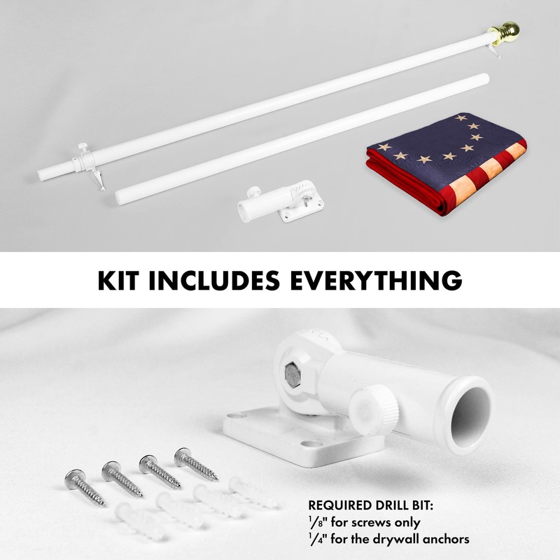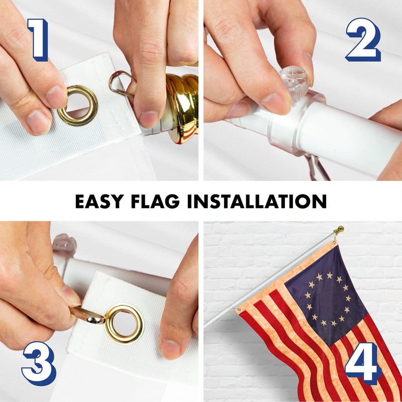 G128 Combo Pack: 6 Ft Aluminum Spinning Flagpole (White) & Betsy Ross Tea-Stained Flag 3x5 Ft, ToughWeave Pro Series Embroidered 420D Polyester | Pole with Flag Included