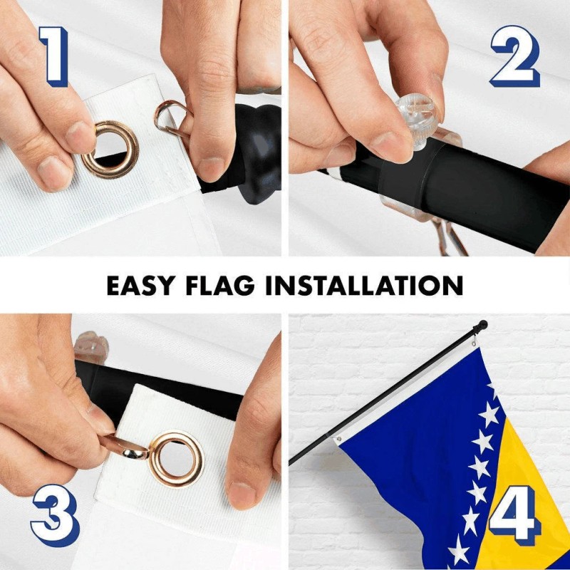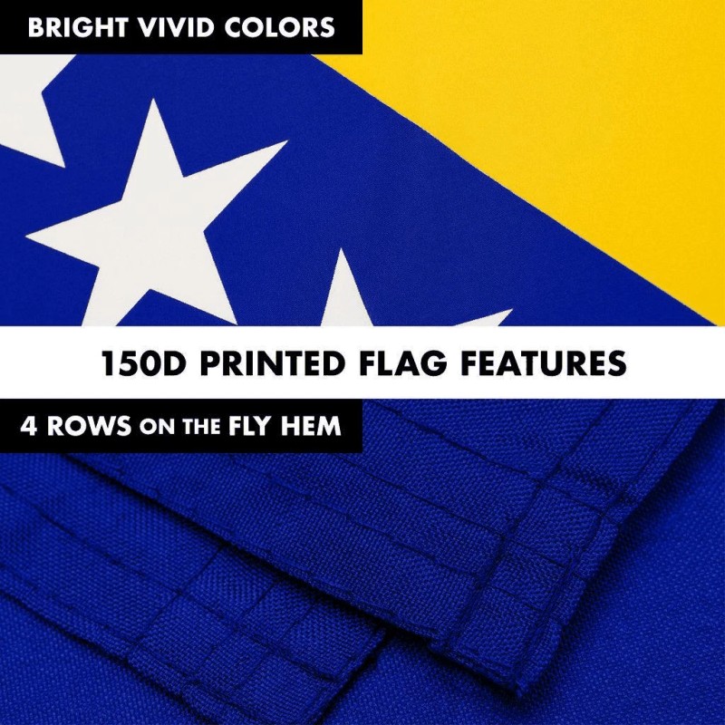 DELUXE PACKAGE: G128 is including a Bosnia and Herzegovina flag with brass grommets for this deluxe flag and flagpole package! All the guarantees of the quality of our G128 flag is included in this package.