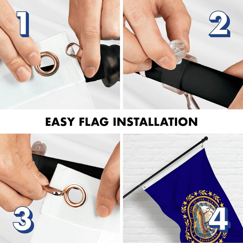 G128 Combo Pack: 6 Ft Tangle Free Spinning Flagpole (Black) & New Hampshire