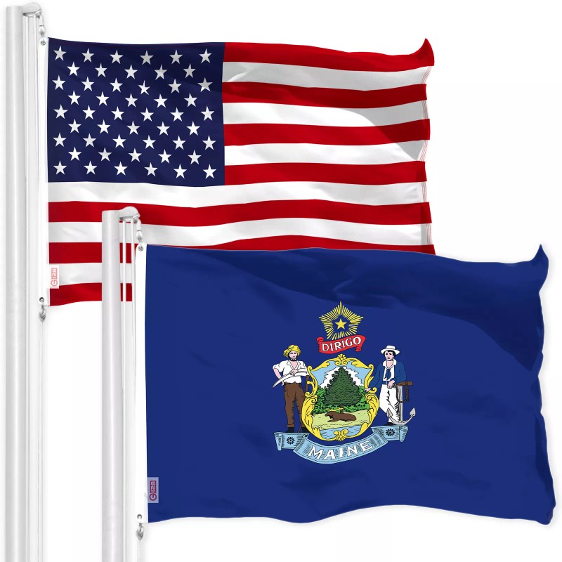 G128 Combo USA 150D Flag & Maine State 300D Flag 3x5 Ft Both Printed Polyester
