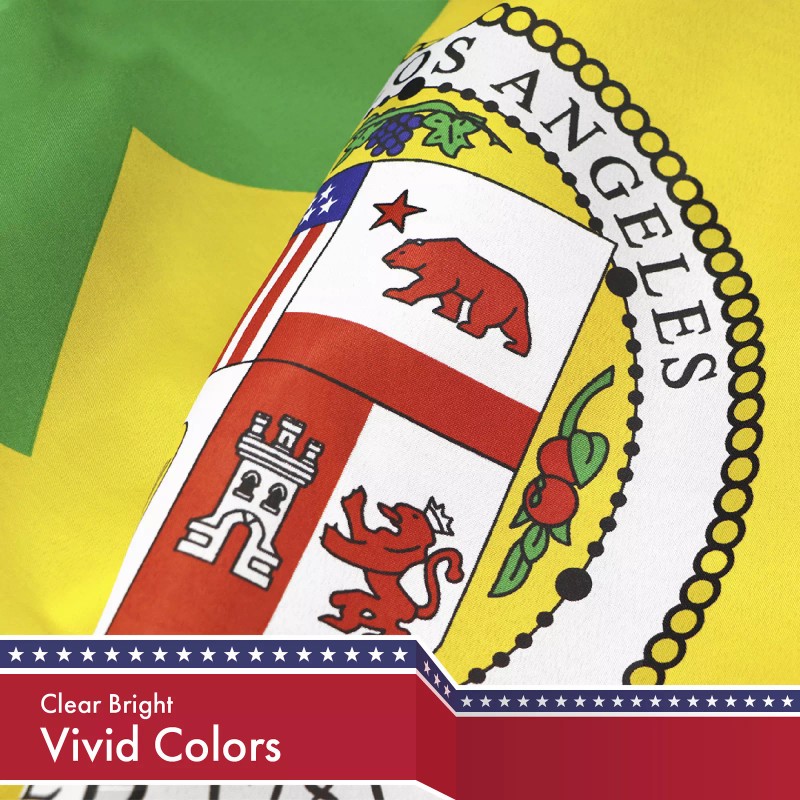 G128 – Los Angeles City Flag | 3x5 feet | Printed 150D Quality Polyester – Indoor/Outdoor, Vibrant Colors, Brass Grommets, Much Thicker More Durable than 100D 75D Polyester, Los Angeles CA California