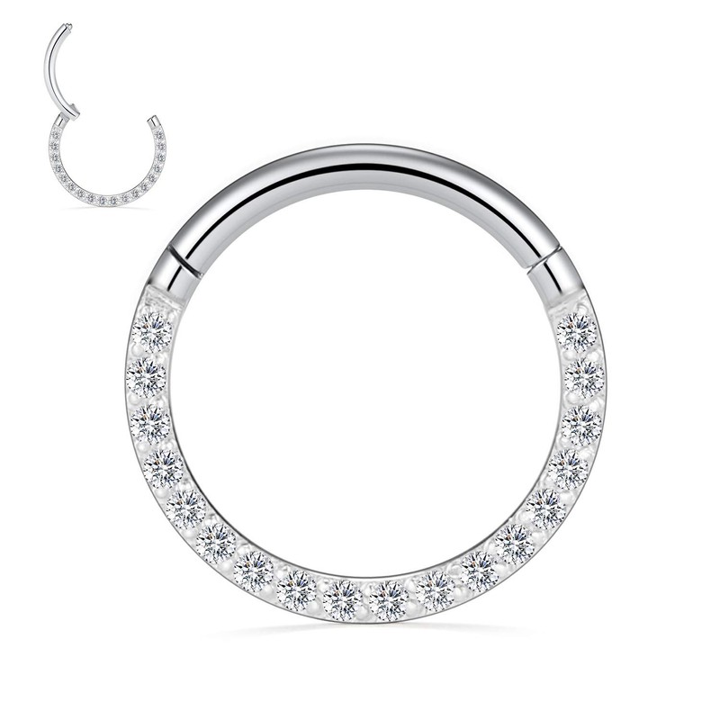 G23 Titanium Septum Jewellery 18G Daith Earrings Septum Clicker Ring Silver Seamless Higned Segment Ring Rook Conch Cartilage Helix Hoop Earrings Nose Hoop Ring Piercing Jewellery 6mm with CZ