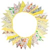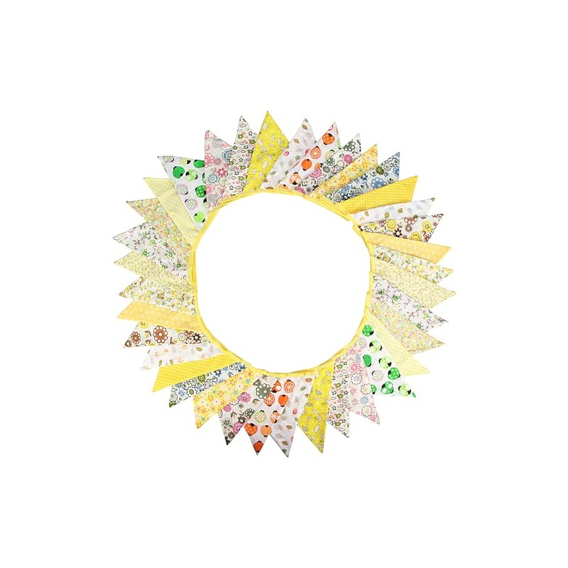 G2PLUS 36PCS Double Sided Fabric Bunting Banner, 10M Large Cotton Triangle Flag Garland-17x19CM Two Layer Yellow Floral Pennants for Easter Day Birthday Parties