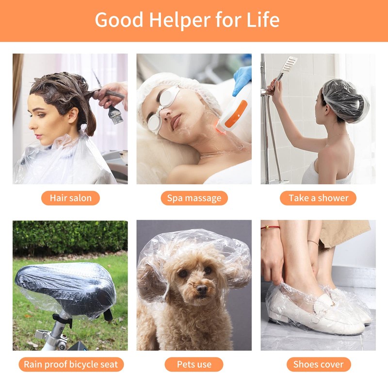 - 【Multiple Uses of Plastic Caps】The Disposable shower caps with large elastic for spa, spray tan, home use, hotel and hair salon.