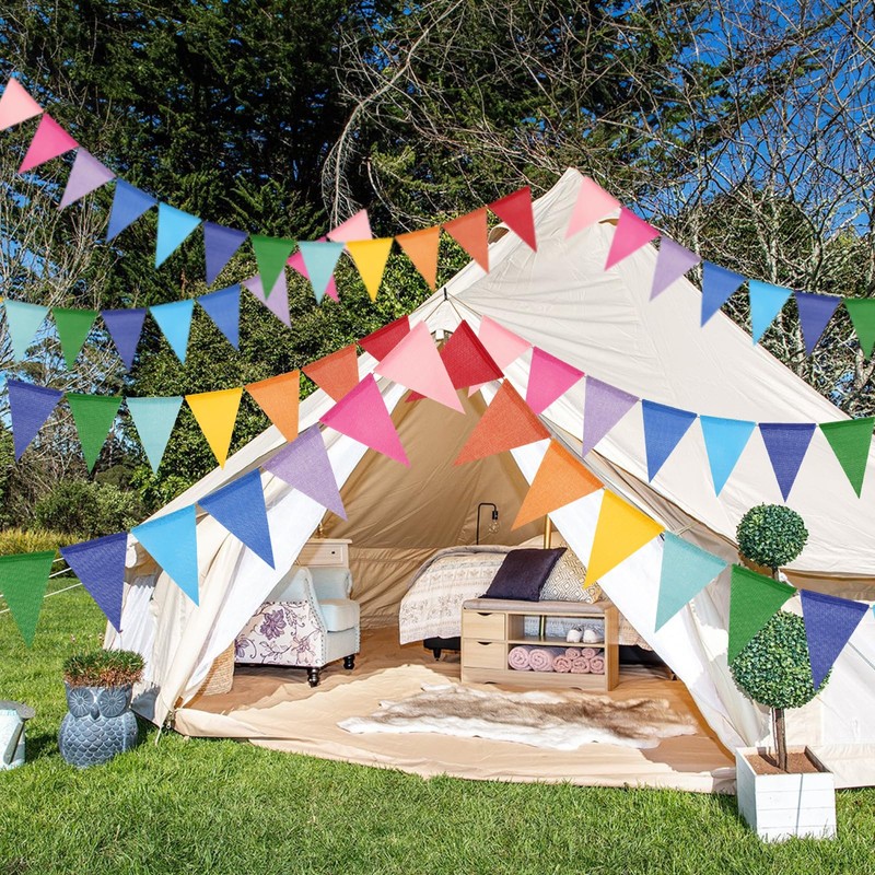 - Weatherproof bunting - The 20 m bunting garland is made of waterproof imitation linen, more eco than various plastic bunting, and robust, durable. Therefore, the party garland is great for outdoor parties and as a garden decoration, bring colour to the