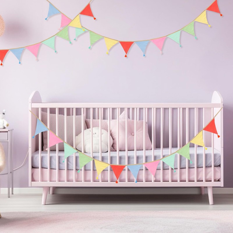 - Great colours fabric bunting: the garland colours are really very strong and a real eye-catcher. The delicate colours and simple design make the bunting a great accessory for any child's room. The fabric bunting can also be used as a wall decoration and gives the room a cosy atmosphere