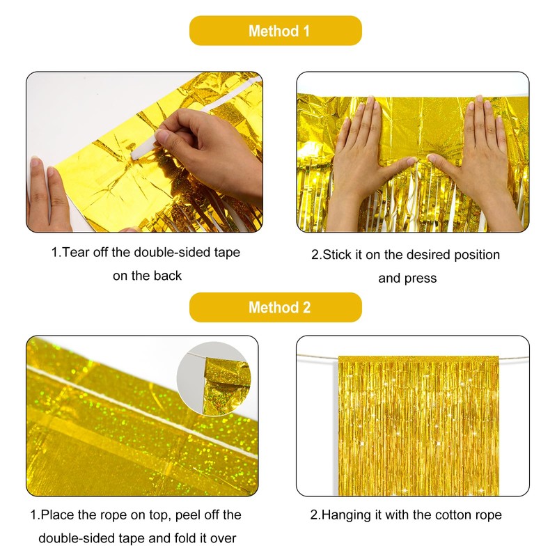- 【Easy to use】The foil curtains are individually packed and folded on a piece of cardboard, they won't be damaged when you open them; the curtains come with adhesive tape and a string, You can rip the tape off and stick it on or just hang it with the rope, it's very easy to use.